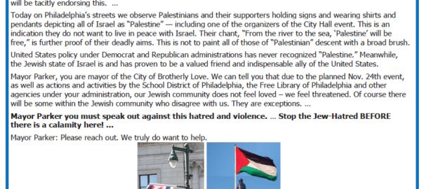 With Ad, Letter, Greater Phila ZOA Calls on Mayor to Cancel Anti-Jewish City Hall Event, Stop Jew-Hatred