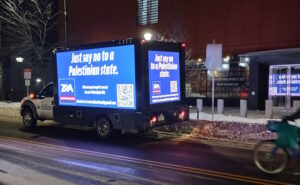 And so Greater Philadelphia ZOA sent our Information Ambulance to the Weitzman Museum of American Jewish History last night — where the museum, the ADL and JCRC were scheduled to be entertaining the goals and agenda of “Palestinian” activist Ahmed Fouad Alkhatib, a Saudi by birth who was denied entry into Israel by the government because of his activities – to make sure attendees of the event saw that rational Jewish groups including ZOA believe that a “Palestinian” state must be out of the question.